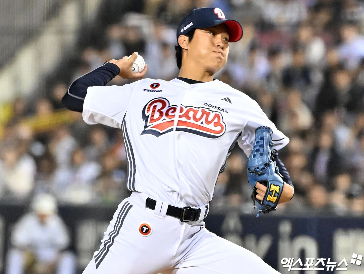 (엑스포츠뉴스 잠실, 김한준 기자) 18일 오후 서울 송파구 잠실야구장에서 열린 '2026 신한 SOL Bank KBO리그' KIA 타이거즈와 두산 베어스의 경기, 10회초 두산 박신지가 공을 힘차게 던지고 있다.