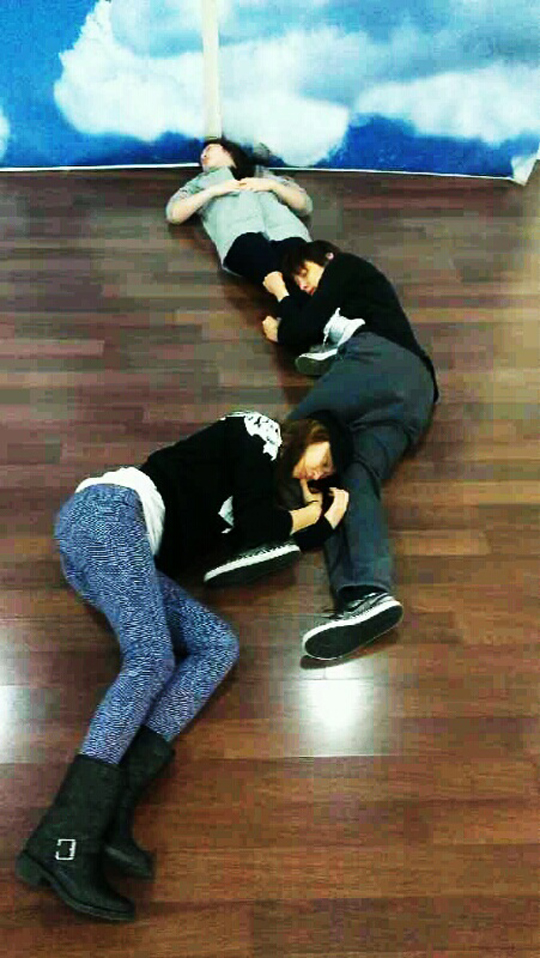 1일 크리스탈은 자신의 SNS '미투데이'를 통해 "연말 시상식 무대 연습하다 지쳐 쓰러진 우리들"이란 글과 함께 사진 한 장을 게재했다.