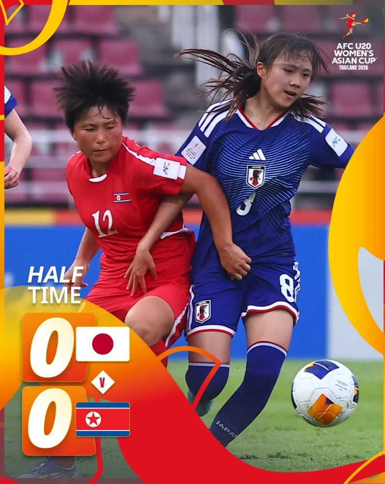 일본 20세 이하(U-20) 여자 축구 국가대표팀은 18일(한국시간) 태국 빠툼타니주의 탐마삿 스타디움에서 열린 북한과의 2026 아시아축구연맹(AFC) U-20 아시아컵 결승전 전반전을 0-0으로 마쳤다.