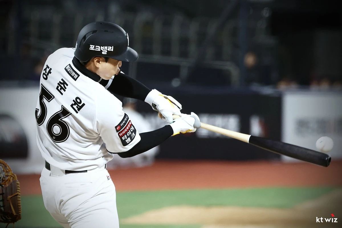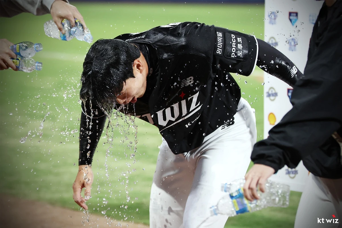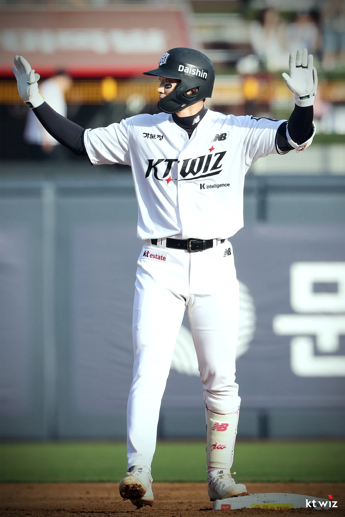 그래도 KT는 2회 선두타자 샘 힐리어드가 볼넷으로 나갔다. 배정대가 유격수 땅볼을 쳤지만, 1루 주자 힐리어드만 아웃되면서 KT는 1사 1루 상황을 이어갔다.