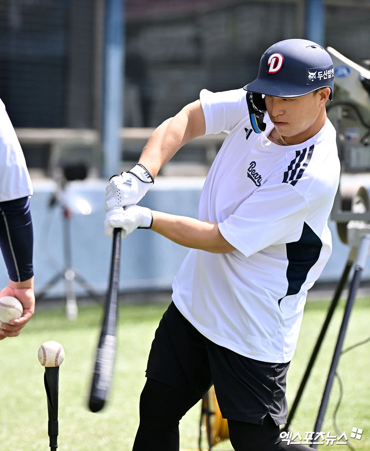 (엑스포츠뉴스 잠실, 김한준 기자) 19일 오후 서울 송파구 잠실야구장에서 열리는 '2026 신한 SOL Bank KBO리그' KIA 타이거즈와 두산 베어스의 경기, 두산 손아섭이 훈련에 임하고 있다.