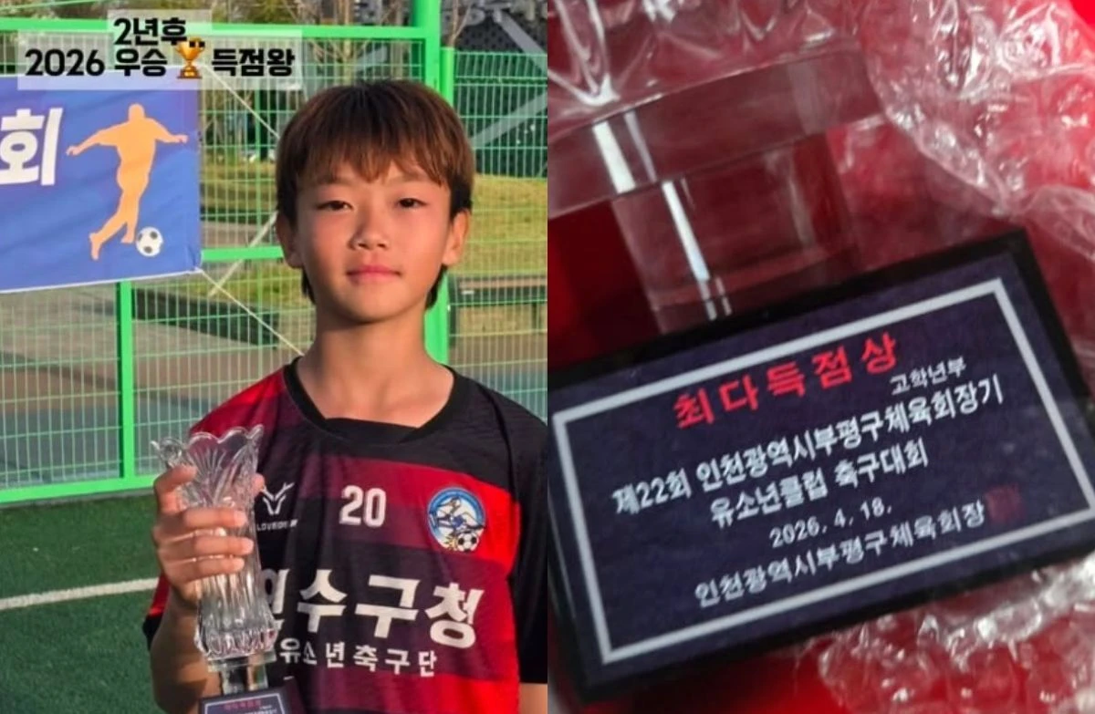 그는 "연수구청팀 U12, U10 동반우승. 부평구체육회장기 4, 6학년 축구대회"라고 알리며 기쁨을 감추지 못했다.