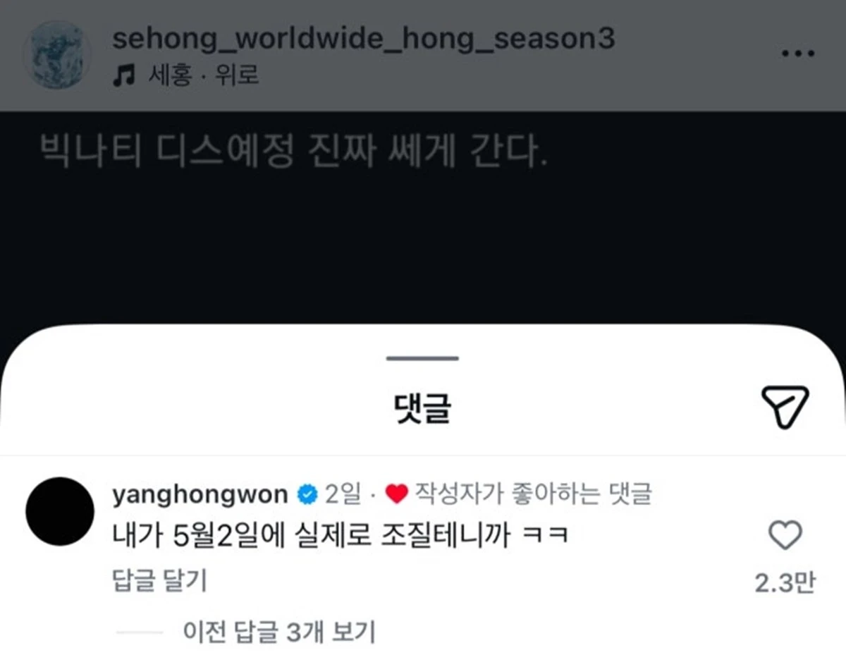 지난 18일 래퍼 세홍은 자신의 계정에 "빅나티 디스 예정. 진짜 세게 간다"는 글을 게재했으며, '힙합 플레이야 페스티벌'에 참가하는 양홍원 역시 "내가 5월 2일에 실제로 조질 테니까"라는 의미심장한 댓글을 써 많은 이들이 주목하고 있다.