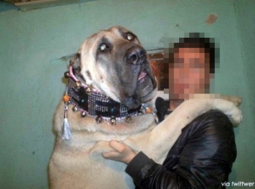 공개된 사진 속에 검은색 상의를 입은 남자는 어마어마한 덩치를 가진 개 한 마리를 끌어안고 있다. 특히, 개는 주인보다 매우 커다란 머리 크기를 가져 눈길을 끌었다.