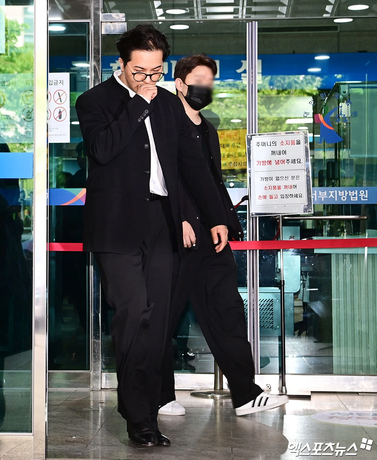 재판을 마친 송민호가 법원을 나서고 있다.