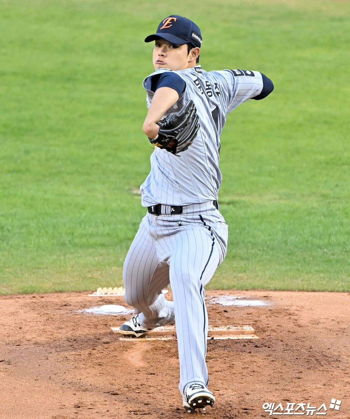 (엑스포츠뉴스 잠실, 김한준 기자) 21일 오후 서울 송파구 잠실야구장에서 열린 '2026 신한 SOL Bank KBO리그' 한화 이글스와 LG 트윈스의 경기, 1회말 한화 선발투수 문동주가 공을 힘차게 던지고 있다.