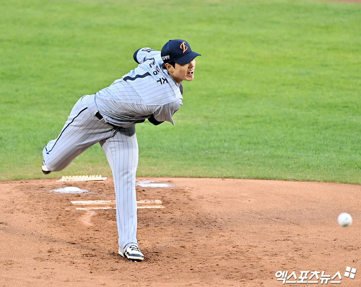 (엑스포츠뉴스 잠실, 김한준 기자) 21일 오후 서울 송파구 잠실야구장에서 열린 '2026 신한 SOL Bank KBO리그' 한화 이글스와 LG 트윈스의 경기, 1회말 한화 선발투수 문동주가 공을 힘차게 던지고 있다.