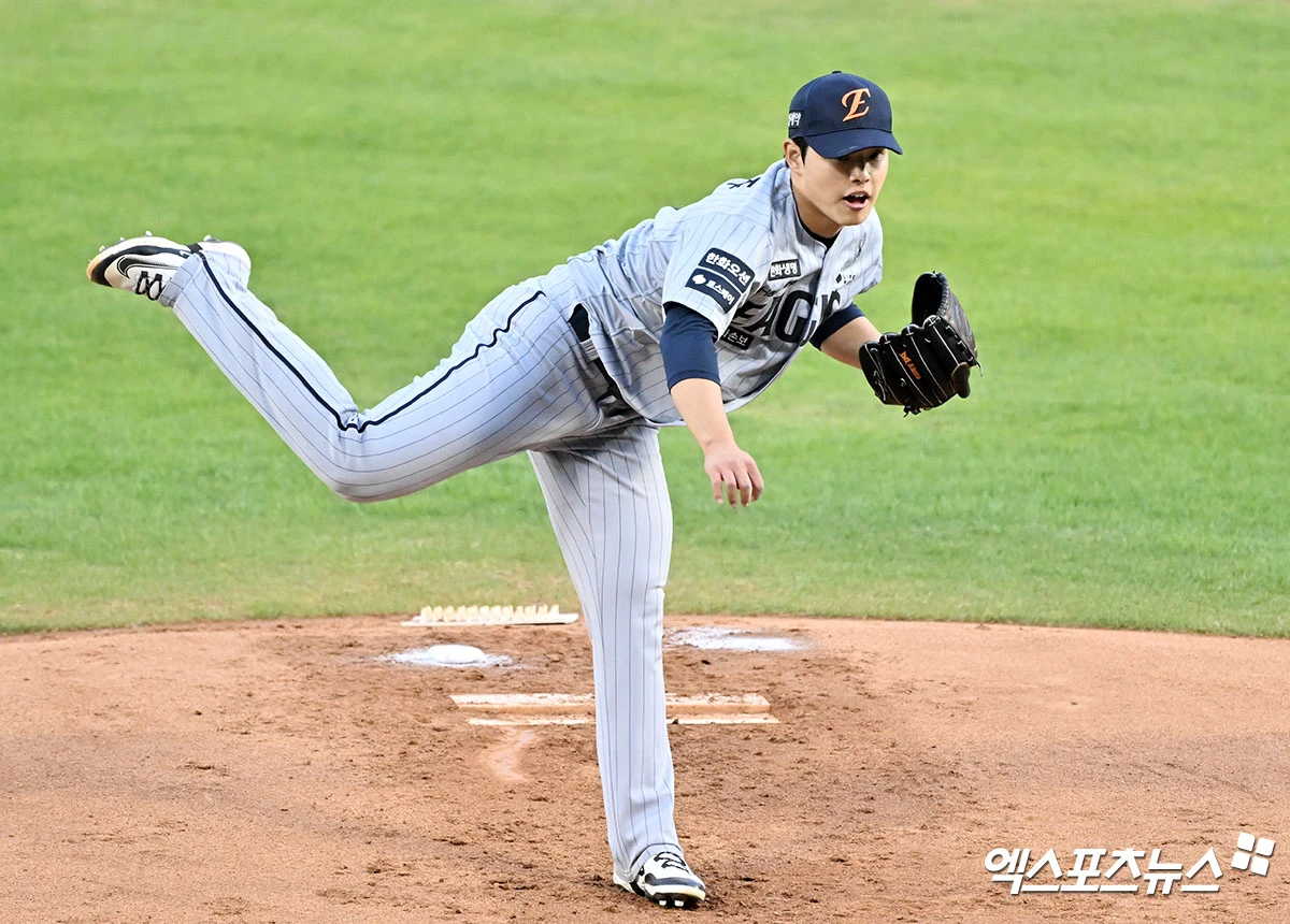 (엑스포츠뉴스 잠실, 김한준 기자) 21일 오후 서울 송파구 잠실야구장에서 열린 '2026 신한 SOL Bank KBO리그' 한화 이글스와 LG 트윈스의 경기, 1회말 한화 선발투수 문동주가 공을 힘차게 던지고 있다.