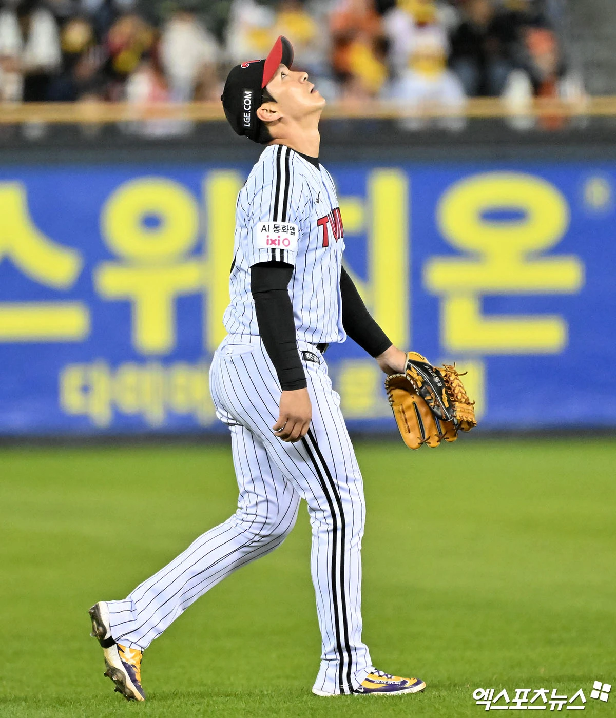 (엑스포츠뉴스 잠실, 김한준 기자) 21일 오후 서울 송파구 잠실야구장에서 열린 '2026 신한 SOL Bank KBO리그' 한화 이글스와 LG 트윈스의 경기, 4회초 1사 1루 LG 오지환이 한화 이도윤의 타구를 놓친 후 아쉬워하고 있다.