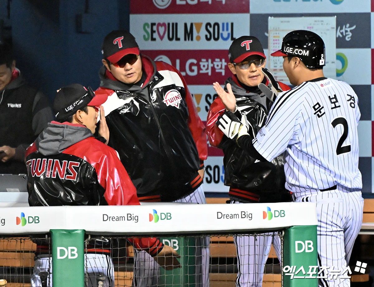 (엑스포츠뉴스 잠실, 김한준 기자) 21일 오후 서울 송파구 잠실야구장에서 열린 '2026 신한 SOL Bank KBO리그' 한화 이글스와 LG 트윈스의 경기, 4회말 1사 만루 LG 문보경이 한화 문동주의 폭투때 득점에 성공하고 있다.