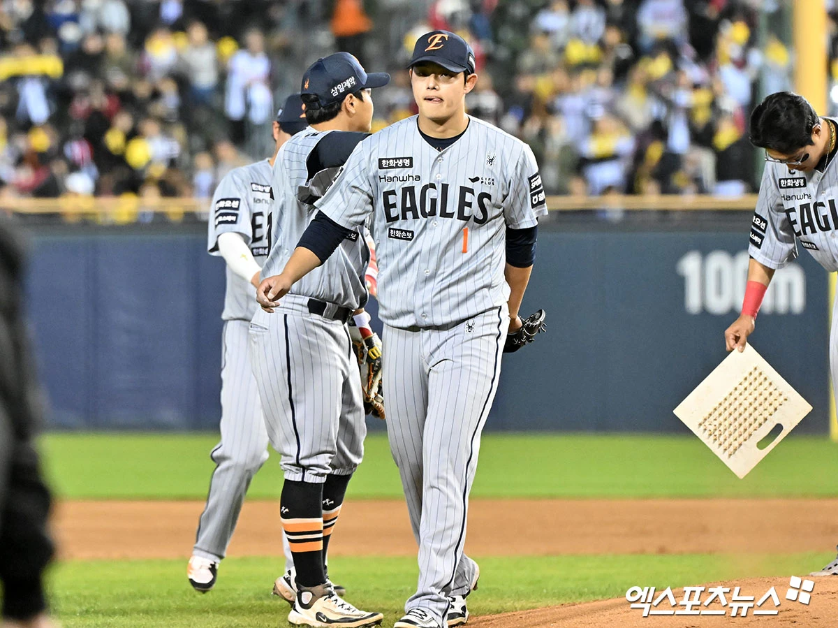 (엑스포츠뉴스 잠실, 김한준 기자) 21일 오후 서울 송파구 잠실야구장에서 열린 '2026 신한 SOL Bank KBO리그' 한화 이글스와 LG 트윈스의 경기, 4회말 2사 2루 한화 문동주가 마운드를 내려오고 있다.