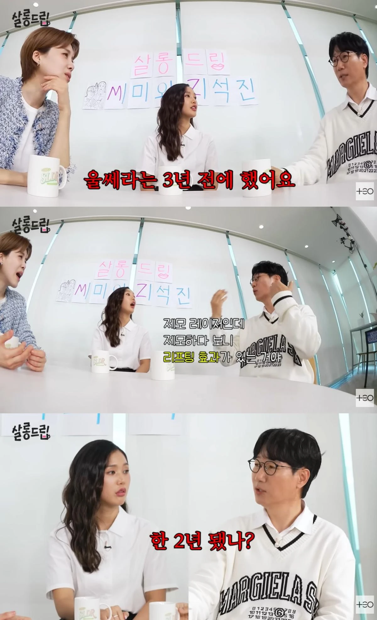 장도연은 "리쥬란, 울쎄라 이런 거 했냐"고 물었고, 지석진은 "울쎄라는 한 3년 전에 해봤다"고 시술을 고백했다.