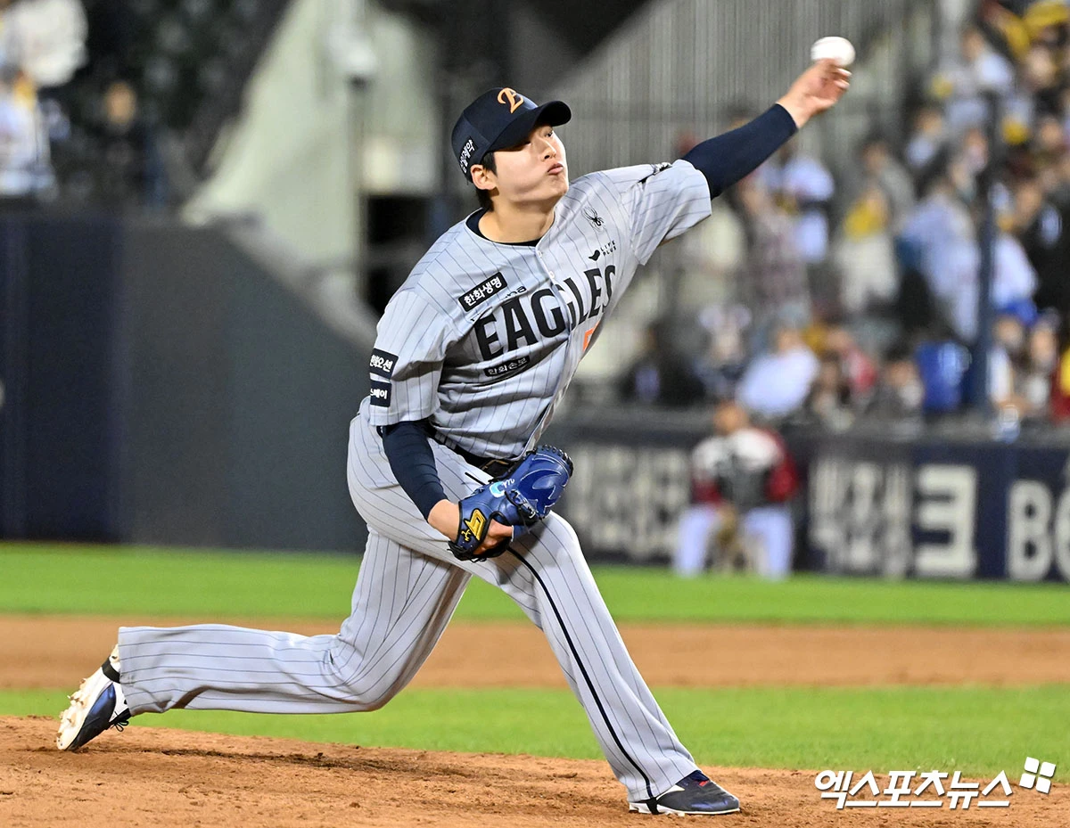 (엑스포츠뉴스 잠실, 김한준 기자) 21일 오후 서울 송파구 잠실야구장에서 열린 '2026 신한 SOL Bank KBO리그' 한화 이글스와 LG 트윈스의 경기, 7회말 한화 조동욱이 공을 힘차게 던지고 있다.