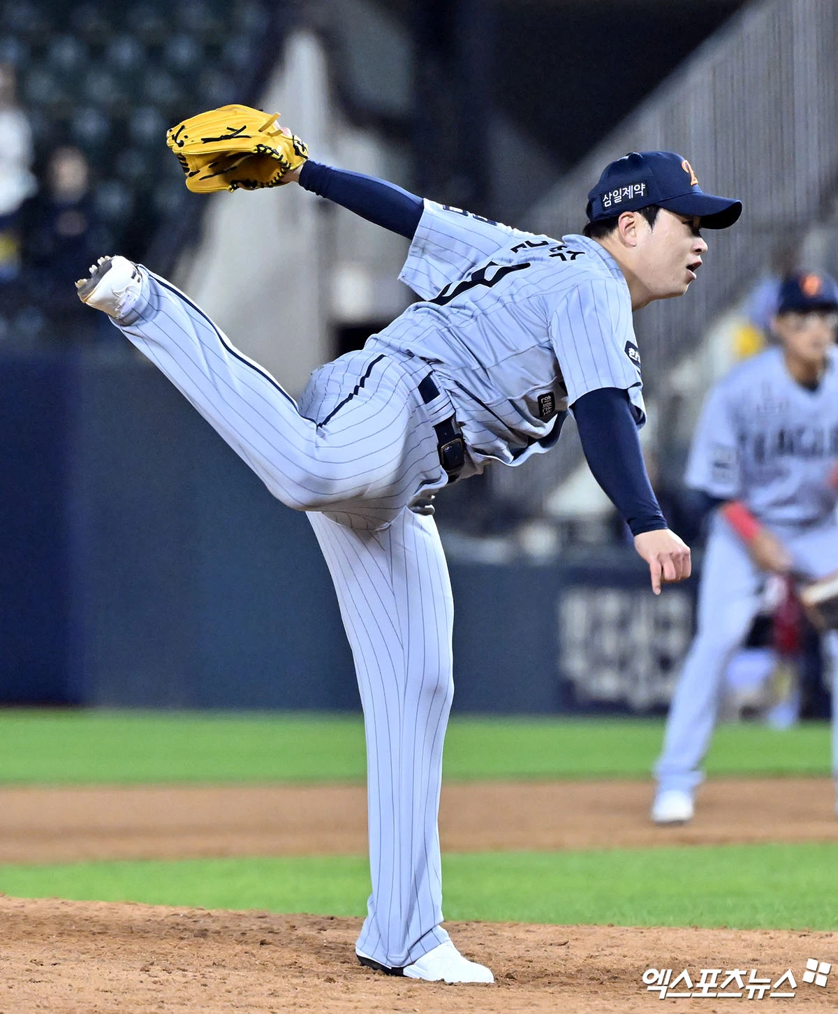 (엑스포츠뉴스 잠실, 김한준 기자) 21일 오후 서울 송파구 잠실야구장에서 열린 '2026 신한 SOL Bank KBO리그' 한화 이글스와 LG 트윈스의 경기, 7회말 2사 2루 한화 김종수가 공을 힘차게 던지고 있다.