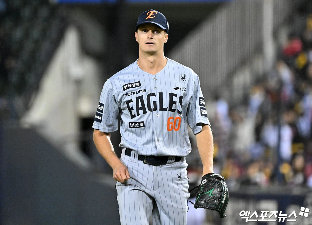 (엑스포츠뉴스 잠실, 김한준 기자) 21일 오후 서울 송파구 잠실야구장에서 열린 '2026 신한 SOL Bank KBO리그' 한화 이글스와 LG 트윈스의 경기, 8회말 수비를 마친 한화 쿠싱이 더그아웃으로 향하고 있다.
