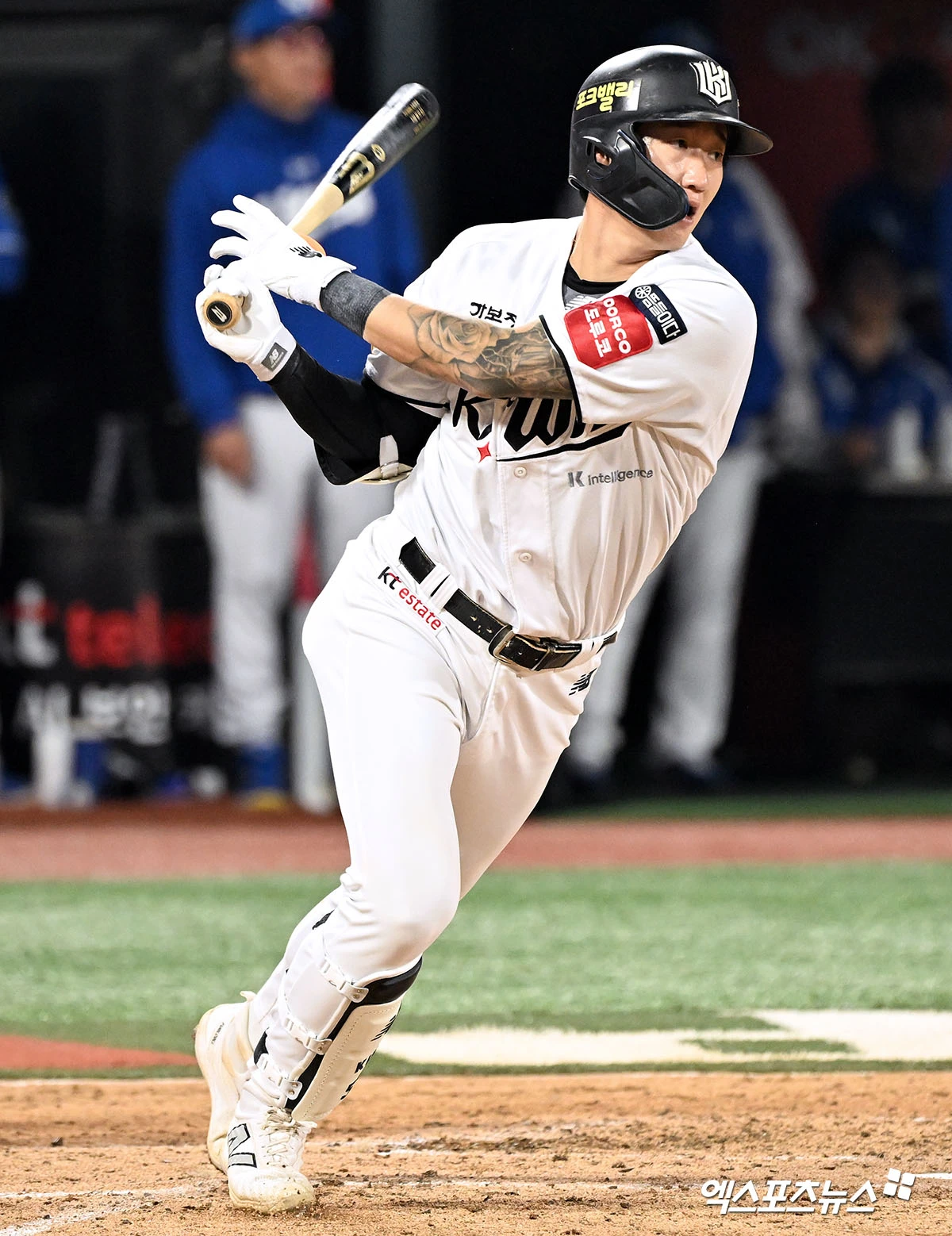 KT는 득점권 기회를 놓치지 않았다. 주인공은 김현수였다. 김현수는 볼카운트 2볼 2스트라이크에서 김태형의 5구 137km/h 슬라이더를 잡아당겨 투런 아치를 그렸다. 김현수의 시즌 3호 홈런. 비거리는 118.5m로 측정됐다.