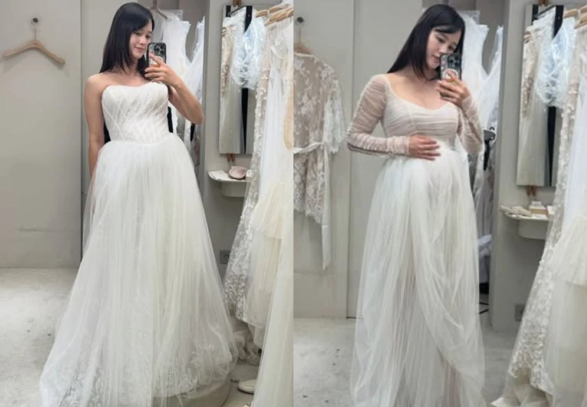 21일 배우 남보라는 "만삭 드레스 피팅 보고 왔다"라며 자신의 계정에 드레스를 입은 사진 여러 장을 게재했다.