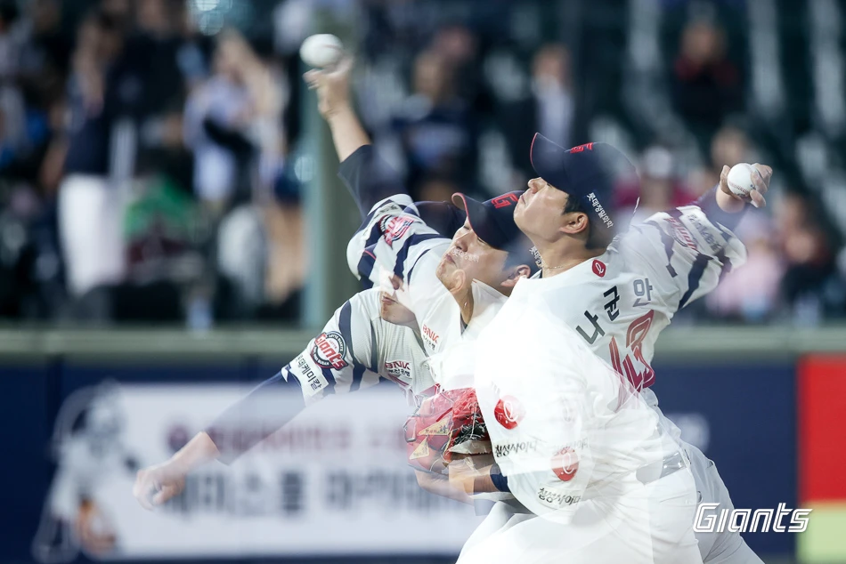 한 차례 폭풍이 지나간 뒤 나균안은 다시 안정을 찾았다. 4회 첫 타자 김민석에게 6구 만에 중전 안타를 허용했으나, 다즈 카메론을 곧바로 병살타로 잡아냈다. 5회에도 볼넷 하나를 내줬지만 실점으로 연결되지 않았다.