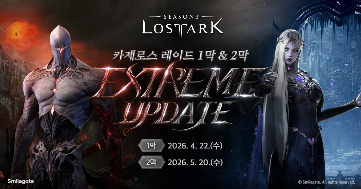 22일 스마일게이트는 MMORPG '로스트아크'의 카제로스 레이드 1막과 2막에 '익스트림' 모드를 추가한다고 밝혔다.