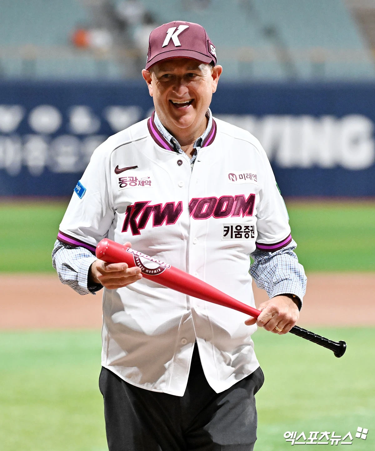 (엑스포츠뉴스 고척, 김한준 기자) 22일 오후 서울 구로구 고척스카이돔에서 열린 '2026 신한 SOL Bank KBO리그' NC 다이노스와 키움 히어로즈의 경기, 경기 전 샌프란시스코 스티븐 레베트리아 엔터프라이즈 사장이 시타에 임하고 있다.