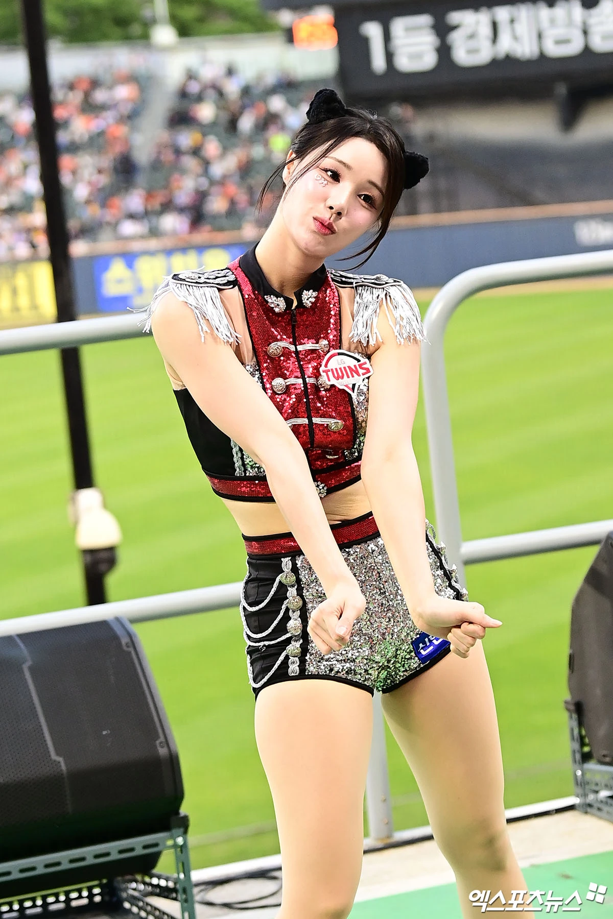 (엑스포츠뉴스 잠실, 박지영 기자) 22일 오후 서울 송파구 잠실야구장에서 열린 '2026 신한 SOL Bank KBO리그' 한화 이글스와 LG 트윈스의 경기, LG 치어리더 고예지가 무대를 선보이고 있다.