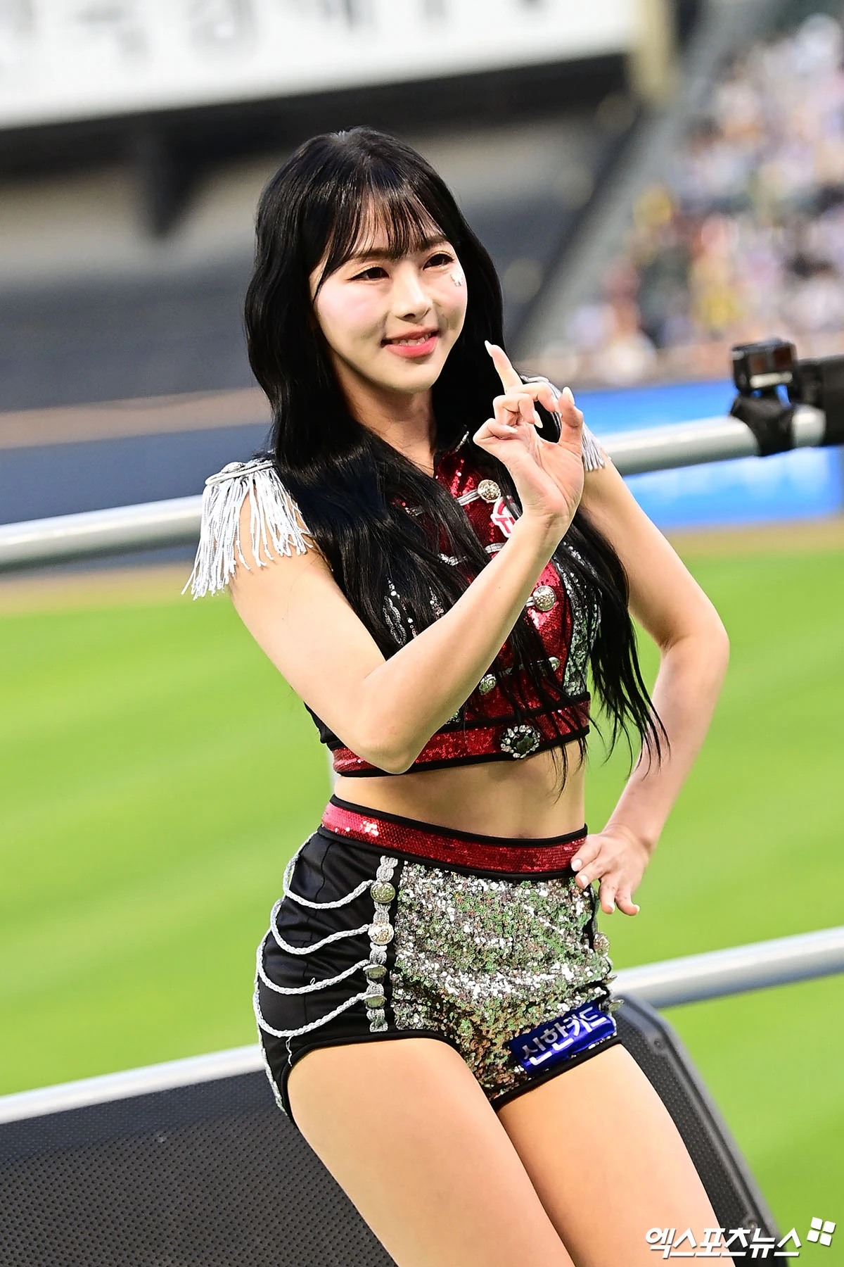 (엑스포츠뉴스 잠실, 박지영 기자) 22일 오후 서울 송파구 잠실야구장에서 열린 '2026 신한 SOL Bank KBO리그' 한화 이글스와 LG 트윈스의 경기, LG 치어리더 차영현이 무대를 선보이고 있다.