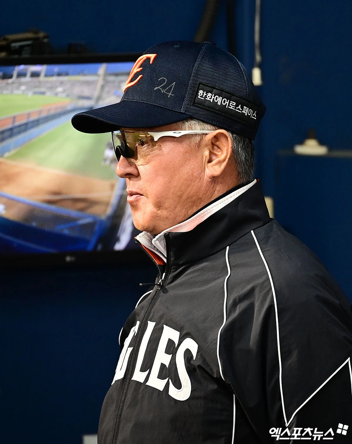 (엑스포츠뉴스 잠실, 박지영 기자) 22일 오후 서울 송파구 잠실야구장에서 열린 '2026 신한 SOL Bank KBO리그' 한화 이글스와 LG 트윈스의 경기, 한화 김경문 감독이 더그아웃서 경기를 지켜보고 있다.