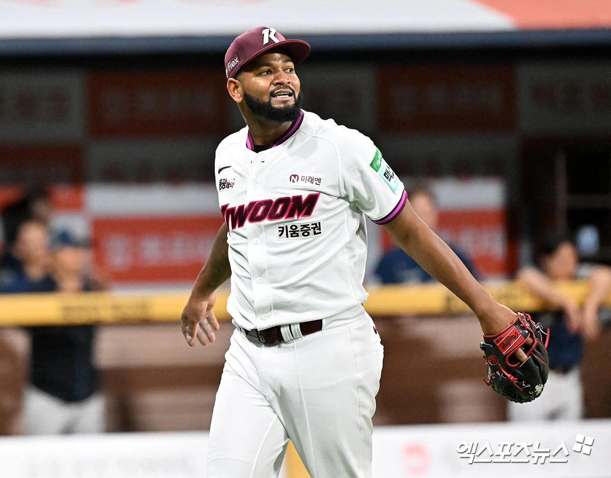 (엑스포츠뉴스 고척, 김한준 기자) 22일 오후 서울 구로구 고척스카이돔에서 열린 '2026 신한 SOL Bank KBO리그' NC 다이노스와 키움 히어로즈의 경기, 6회초 수비를 마친 키움 알칸타라가 더그아웃으로 향하고 있다.