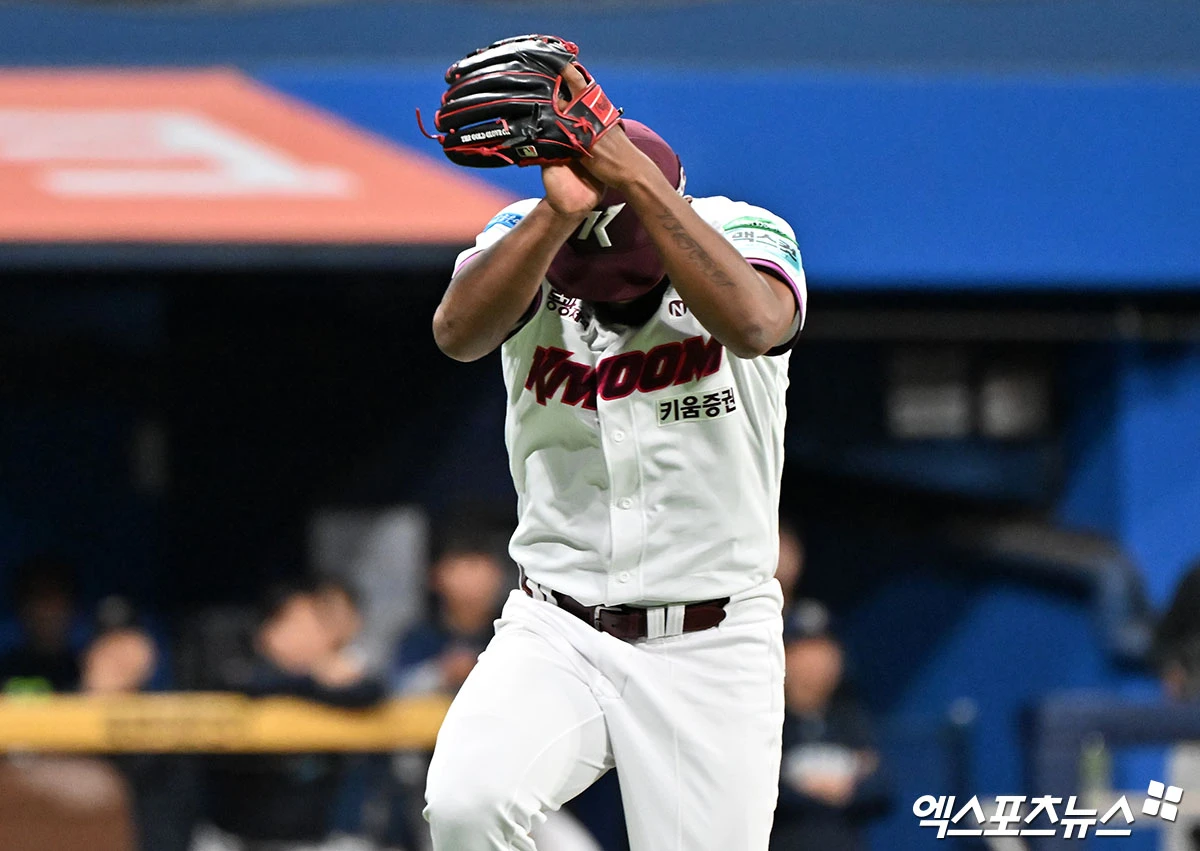 (엑스포츠뉴스 고척, 김한준 기자) 22일 오후 서울 구로구 고척스카이돔에서 열린 '2026 신한 SOL Bank KBO리그' NC 다이노스와 키움 히어로즈의 경기, 7회초 수비를 마친 키움 알칸타라가 기뻐하고 있다.