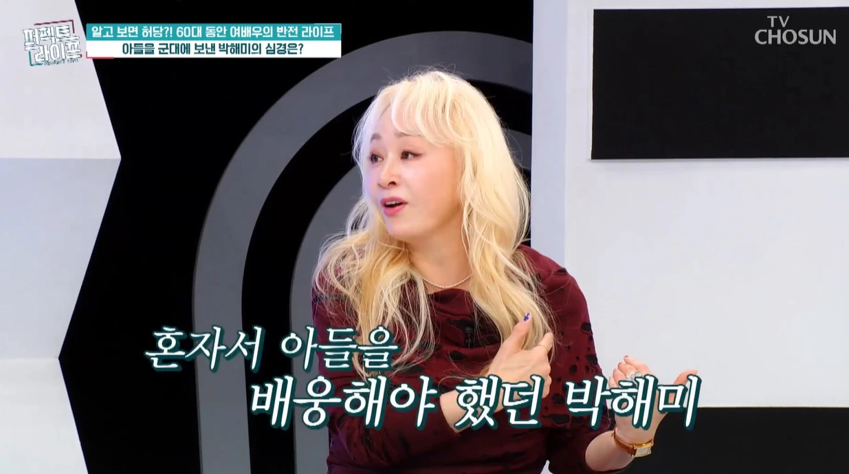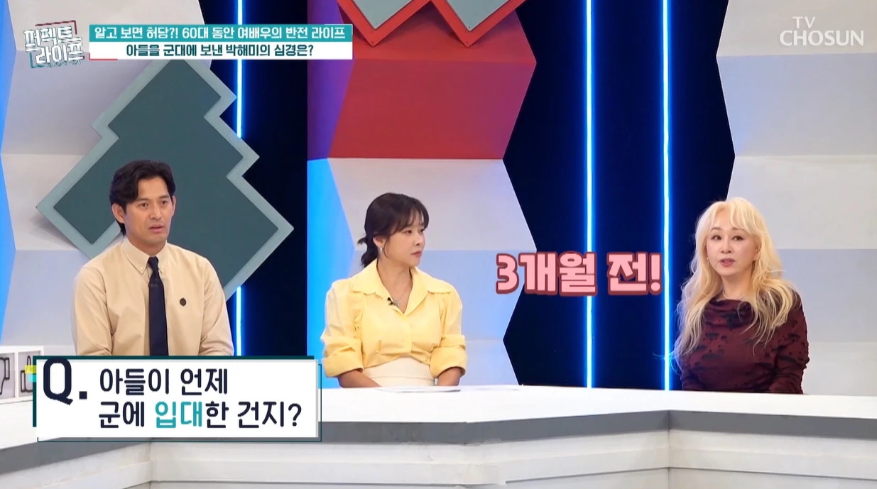 이에 박해미는 "3개월 전에 입대했다"면서 "신난다. 걸리적 거리는 게 없으니까. 온리 나 혼자만의 세상"이라며 아들의 입대를 기뻐했다.