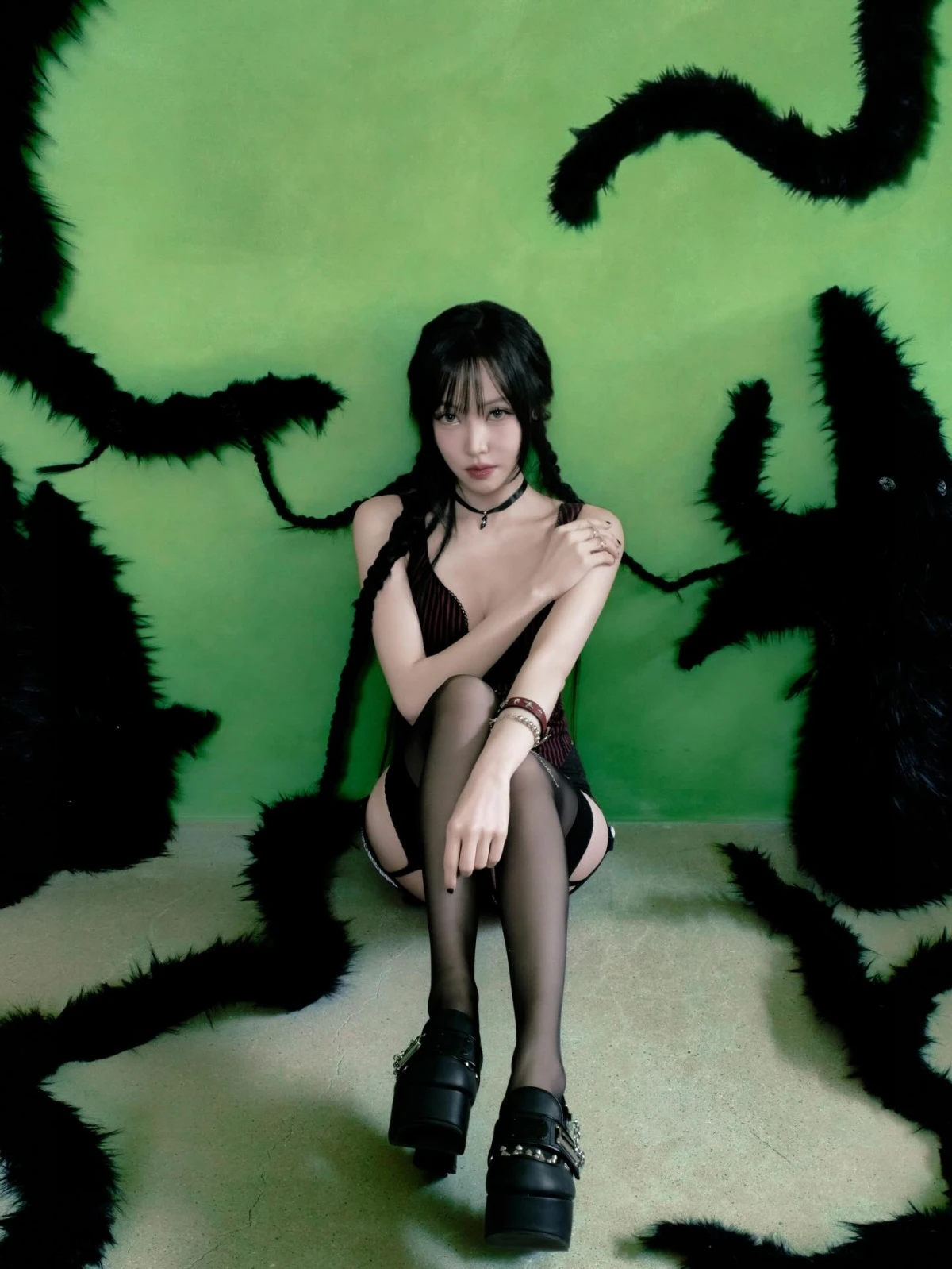 검은색과 버건디 컬러가 조화를 이룬 의상과 브레이드 헤어 스타일과 초커, 플랫폼 슈즈 등을 매치해 기존 여자친구 시절의 청순하고 단아한 이미지와는 확연히 다른 콘셉트를 완성하며 퇴폐적인 섹시미를 장착했다.