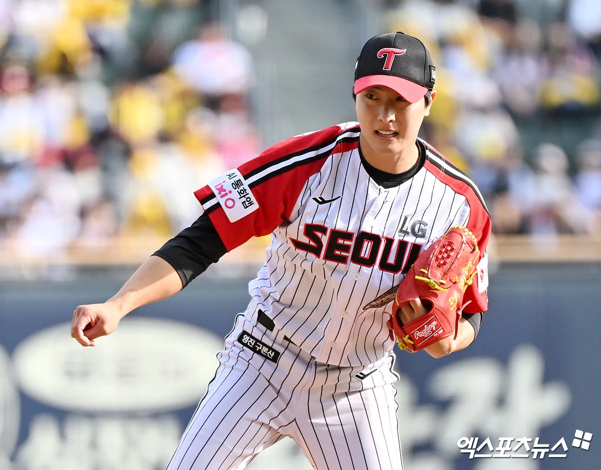 이날 LG는 박해민(중견수)~문성주(좌익수)~오스틴 딘(1루수)~문보경(지명타자)~오지환(유격수)~천성호(3루수)~박동원(포수)~송찬의(우익수)~신민재(2루수)로 선발 타선을 꾸렸다. 전날(22일) 라인업에서 2루수 자리만 구본혁에서 신민재로 교체됐다. 한화와 1차전 2타점 적시타에 이어 지난 경기 결승 투런 홈런을 때려낸 송찬의가 3경기 연속 선발 명단에 이름을 올렸다.