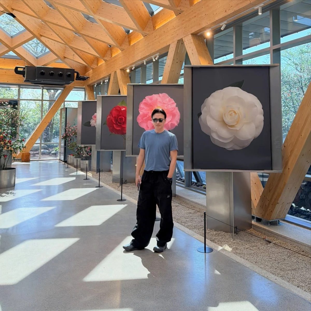 이와 함께 공개된 사진 속 진태현은 꽃 그림을 배경으로 서서 포즈를 취하고 있다.