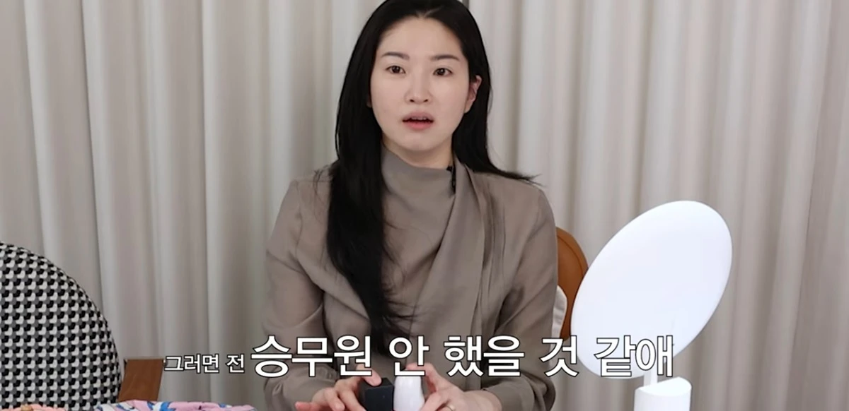 그는 "그래서 가루 파우더를 했다"며 "요즘처럼 광 돌게 하면 그때는 혼나는 거다. 화장을 안 했다고 혼났다"고 힘들었던 승무원 시절을 언급했다.
