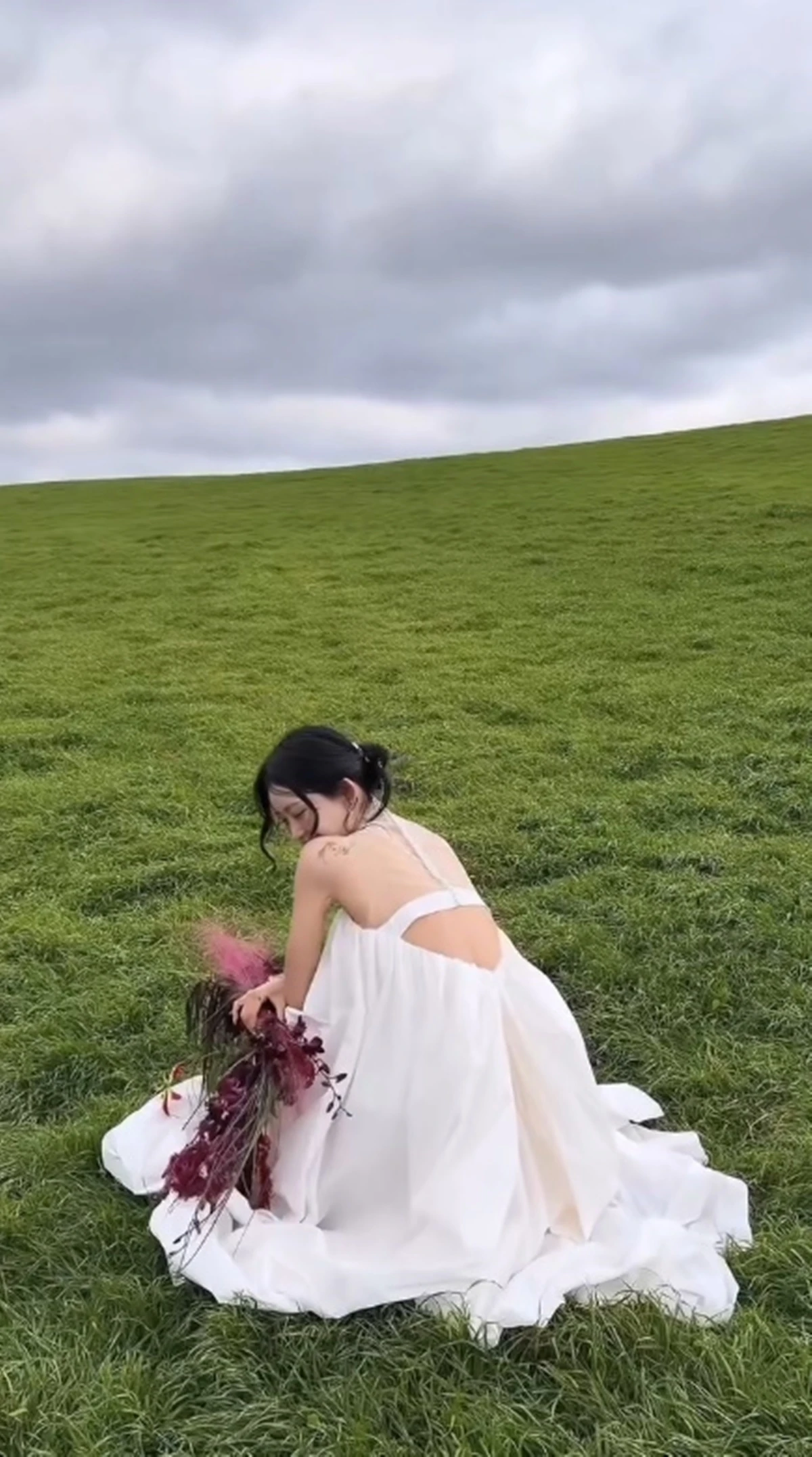 공개된 영상 속 최준희는 푸른 초원을 배경으로 순백의 웨딩드레스를 입고 다양한 포즈를 취하고 있다. 특히 기존의 단정한 웨딩드레스와 달리 등이 깊게 파인 백리스 디자인으로 과감하면서도 세련된 분위기를 자아냈다.
