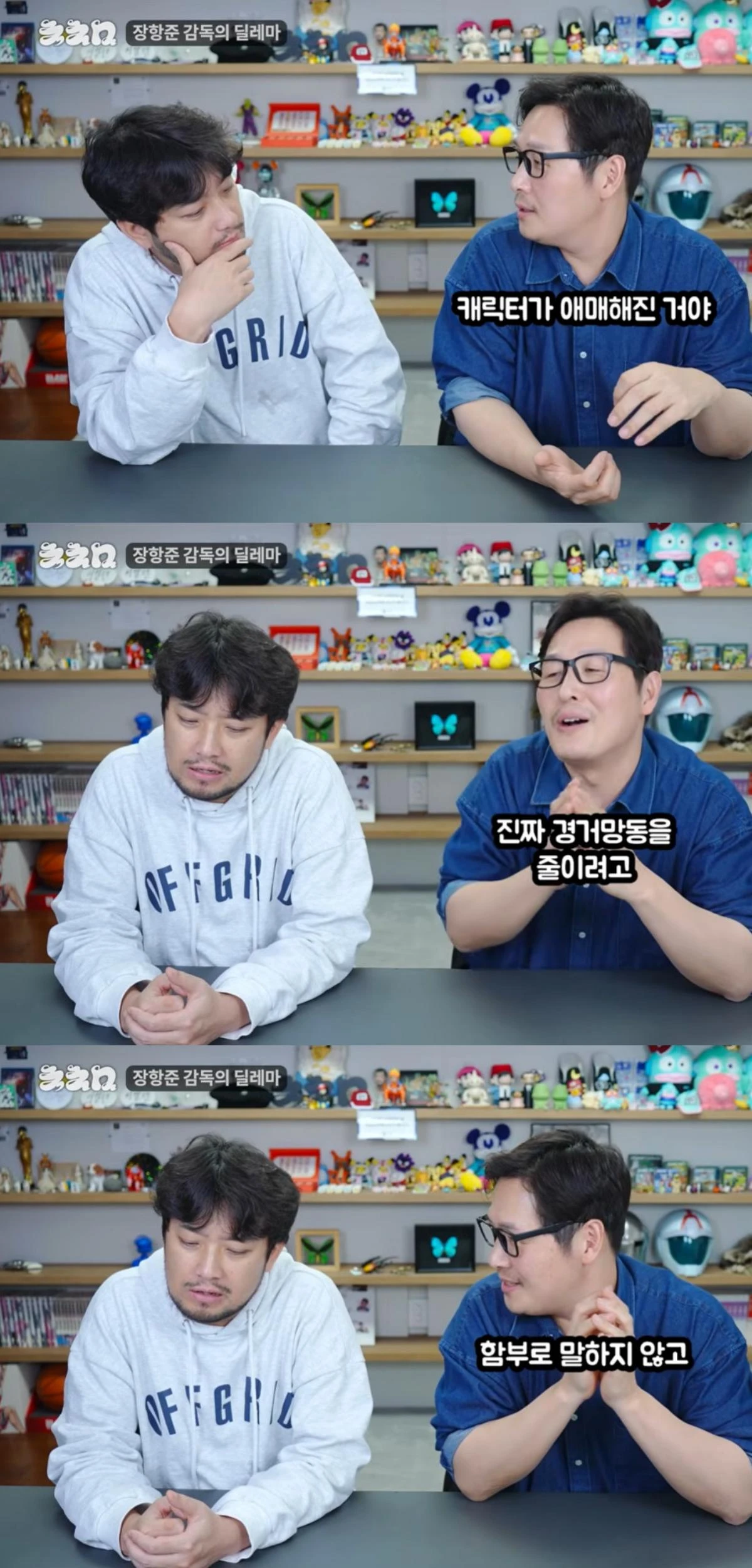 침착맨은 "더 신나야 하는데?"라고 이야기했고, 김풍은 "어느 순간 항준이 형 본인도 캐릭터가 애매해졌다. 사람 좋고 유머있고 재밌는데 영화는 잘 모르겠는 이런 감독이었다"고 운을 뗐다.