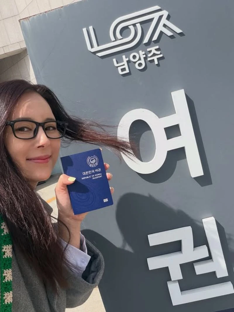 에바는 23일 자신의 계정에 "최고의 생일 선물. 만 45살 오늘 한국 여권이 나왔어요"라는 글과 함께 발급받은 파란색 신형 대한민국 여권과 함께 찍은 셀카를 게재했다.