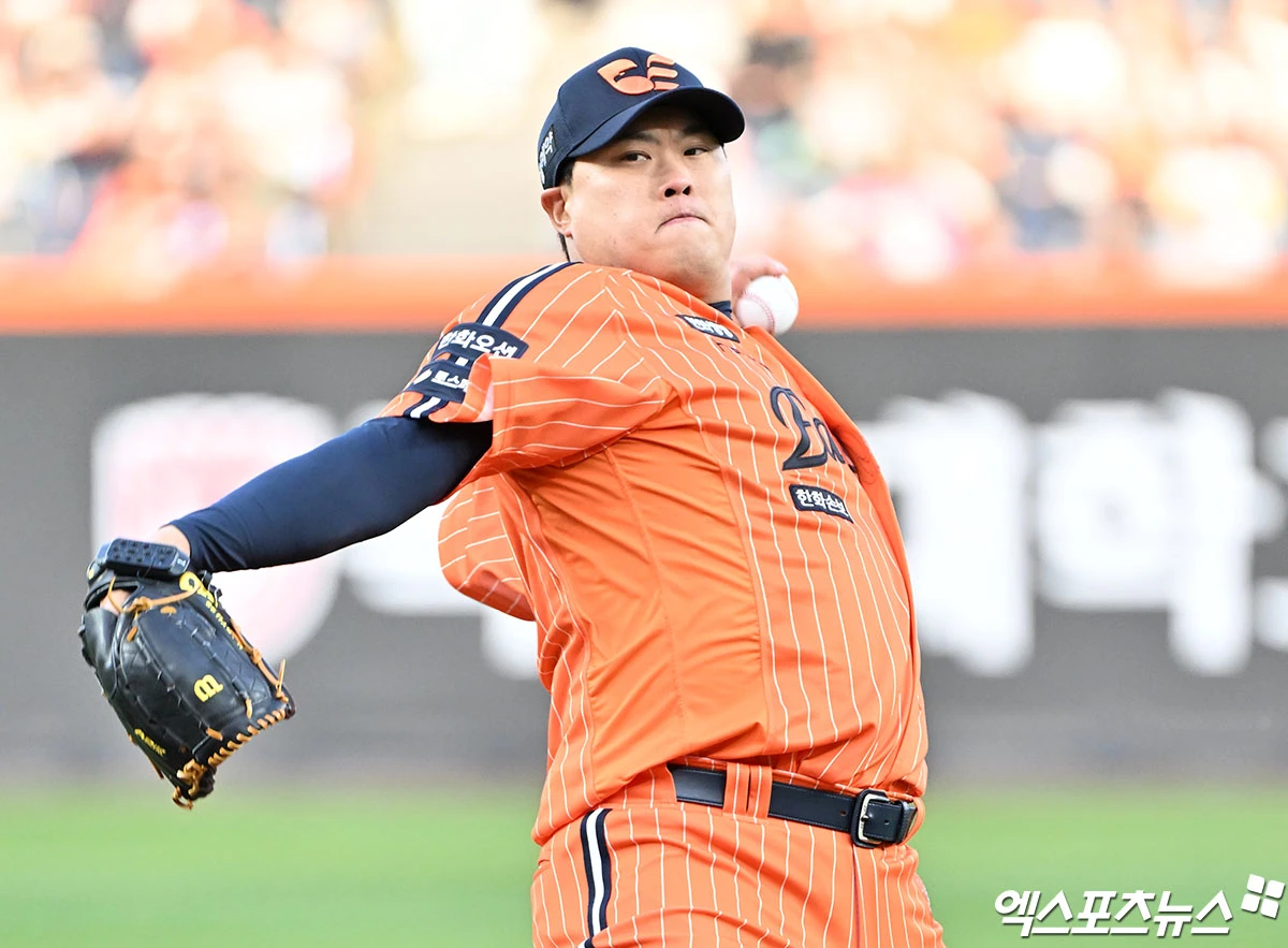 (엑스포츠뉴스 대전, 김한준 기자) 24일 오후 대전 한화생명 볼파크에서 열린 '2026 신한 SOL Bank KBO리그' NC 다이노스와 한화 이글스의 경기, 1회초 한화 선발투수 류현진이 공을 힘차게 던지고 있다.