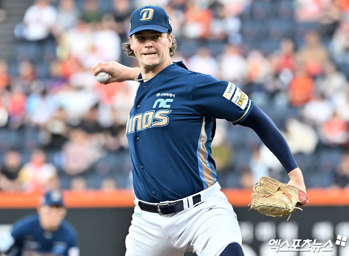 (엑스포츠뉴스 대전, 김한준 기자) 24일 오후 대전 한화생명 볼파크에서 열린 '2026 신한 SOL Bank KBO리그' NC 다이노스와 한화 이글스의 경기, 1회말 NC 선발투수 테일러가 공을 힘차게 던지고 있다.
