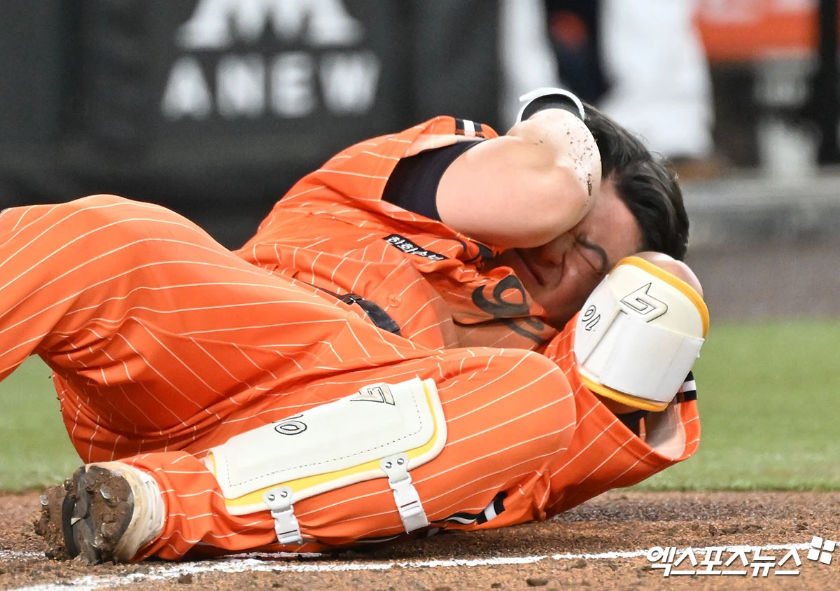 헤드샷 맞은 노시환[포토]