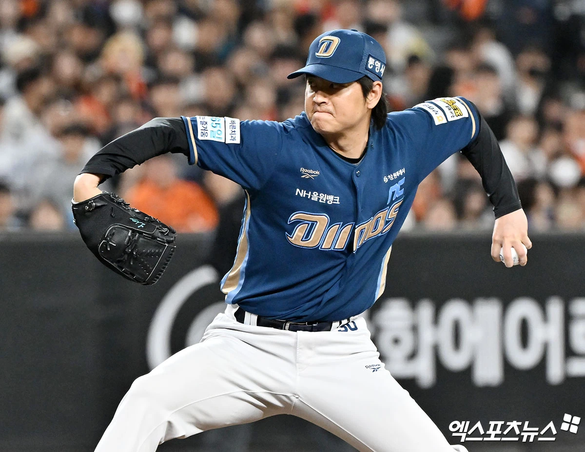 (엑스포츠뉴스 대전, 김한준 기자) 24일 오후 대전 한화생명 볼파크에서 열린 '2026 신한 SOL Bank KBO리그' NC 다이노스와 한화 이글스의 경기, 5회말 2사 2루 NC 임정호가 공을 힘차게 던지고 있다.