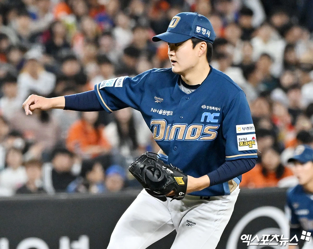 (엑스포츠뉴스 대전, 김한준 기자) 24일 오후 대전 한화생명 볼파크에서 열린 '2026 신한 SOL Bank KBO리그' NC 다이노스와 한화 이글스의 경기, 7회말 NC 임지민이 공을 힘차게 던지고 있다.