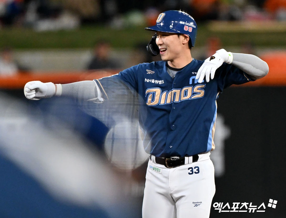 (엑스포츠뉴스 대전, 김한준 기자) 24일 오후 대전 한화생명 볼파크에서 열린 '2026 신한 SOL Bank KBO리그' NC 다이노스와 한화 이글스의 경기, 8회초 1사 1,2루 NC 한석현이 1타점 2루타를 날리고 있다.