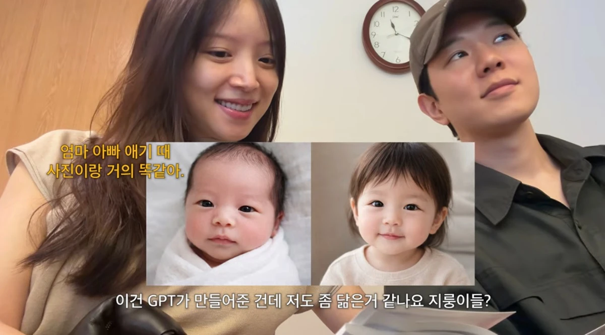 김지영의 담당의는 "(사진과) 거의 똑같다"며 "엄마 아빠가 예쁘지 않나. 두 사람 아기 때 사진이랑 거의 똑같다"고 귀띔했다. 이어 김지영은 AI로 만든 두 사람의 아이 사진을 보여주며 "저도 좀 닮은 것 같냐"라며 물었다.