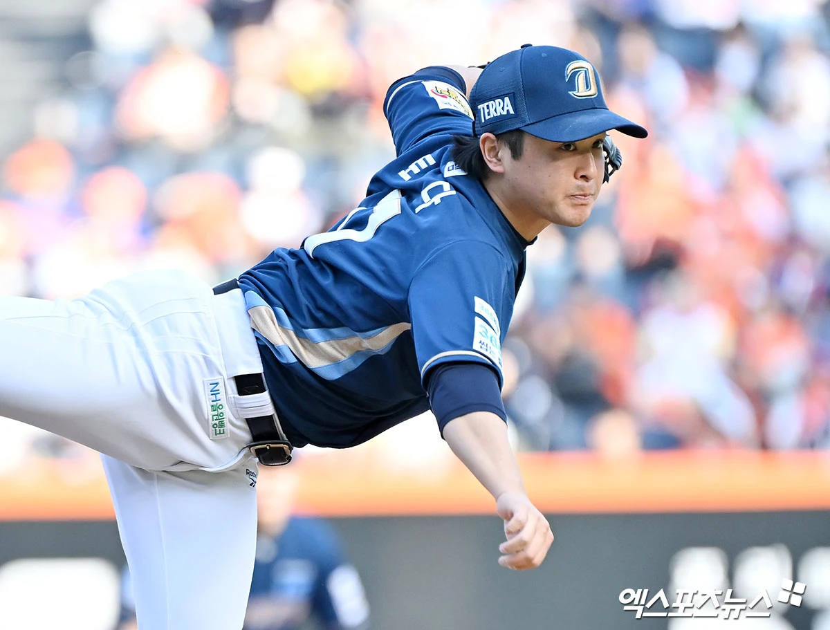 (엑스포츠뉴스 대전, 김한준 기자) 25일 오후 대전 한화생명 볼파크에서 열린 '2026 신한 SOL Bank KBO리그' NC 다이노스와 한화 이글스의 경기, 1회말 NC 선발투수 토다가 공을 힘차게 던지고 있다.