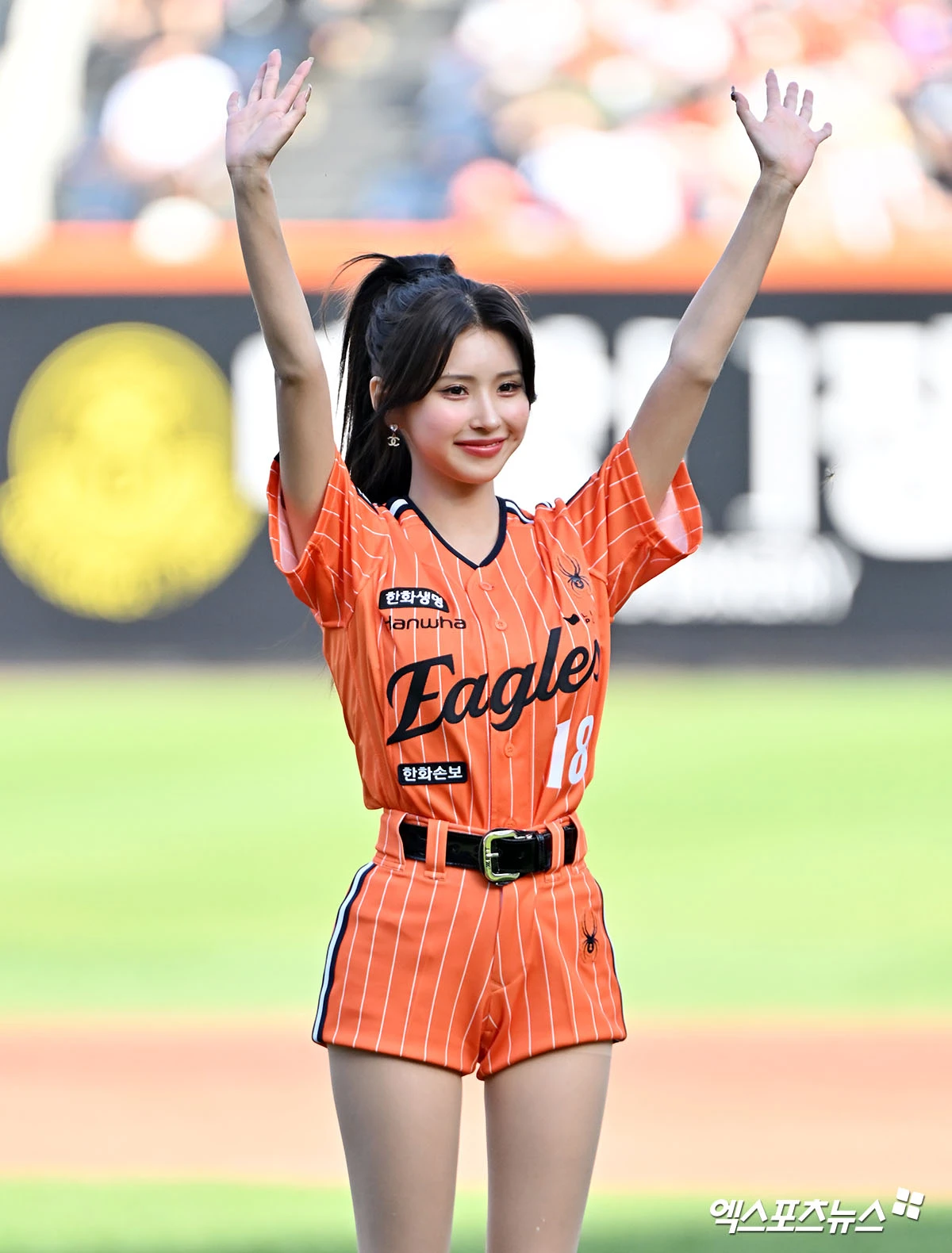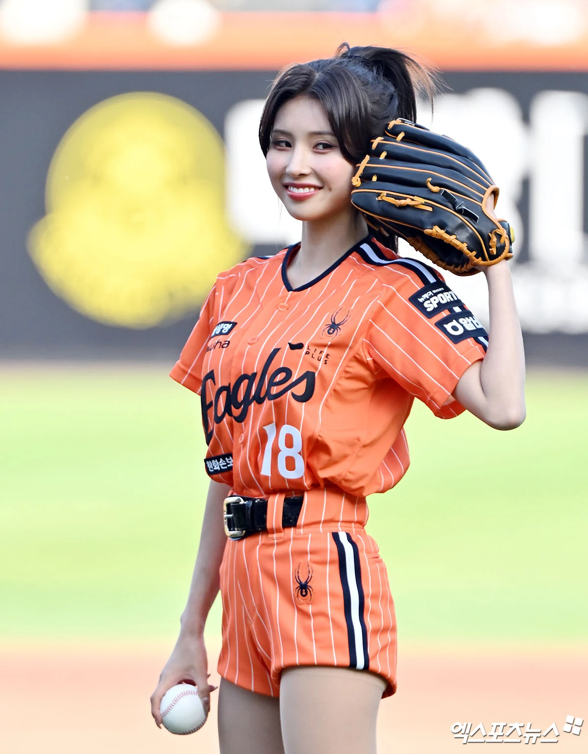 한화 유니폼을 입고 마운드에 선 전은비는 완벽한 자세로 공을 던져 남다른 투구 솜씨를 뽐냈다. 걸그룹 출신답게 우월한 몸 라인과 상큼한 미소도 선보였다.