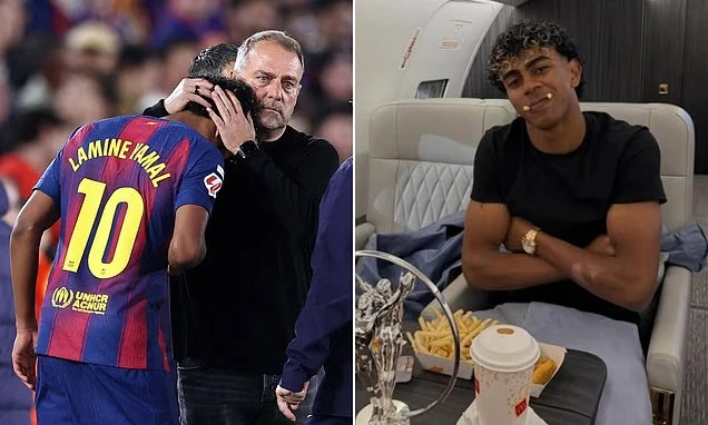 영국 데일리메일은 25일(한국시간) "바르셀로나의 스타 선수 야말이 개인 전용기에서 맥도날드를 먹는 '자랑스러운' 사진을 공유한 지 48시간도 채 안 돼 부상을 입어 '프로답지 못한' 태도를 보였다는 비난을 받고 있다"고 보도했다.