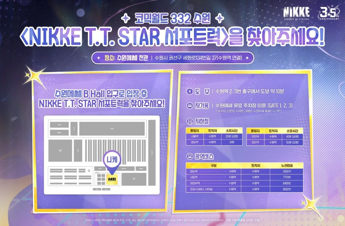 이번 이벤트는 '코믹월드 332 수원' 티켓을 구매해 참여할 수 있다. 상세 정보는 공식 라운지를 통해 확인할 수 있다.