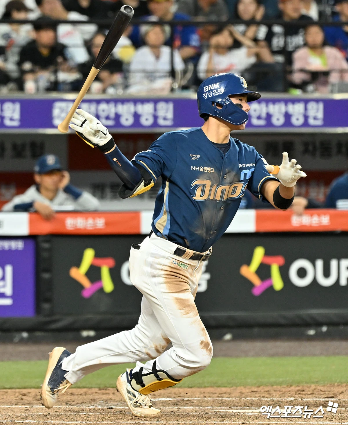 (엑스포츠뉴스 대전, 김한준 기자) 25일 오후 대전 한화생명 볼파크에서 열린 '2026 신한 SOL Bank KBO리그' NC 다이노스와 한화 이글스의 경기, 8회초 NC 김주원이 타격을 하고 있다.