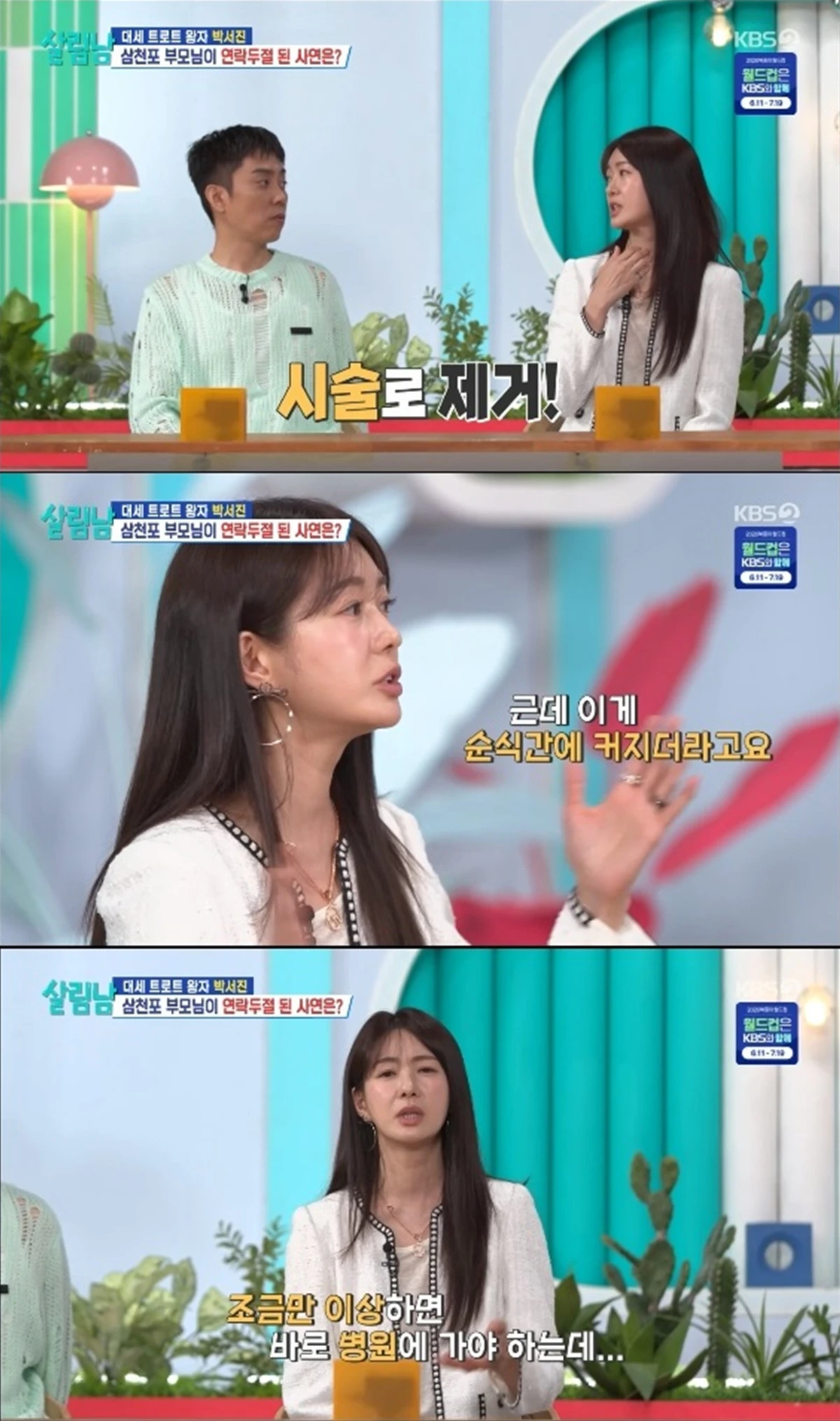 이요원은 "이게 순식간에 커지더라. 조금만 이상하면 병원에 가야 한다"며 박서진 어머니의 상황을 안타까워했다.